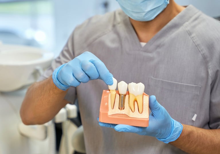 Indicados para substituir dentes perdidos. Os implantes funcionam como raízes artificiais que sustentam coroas dentárias, devolvendo segurança para mastigar, falar e sorrir com naturalidade.